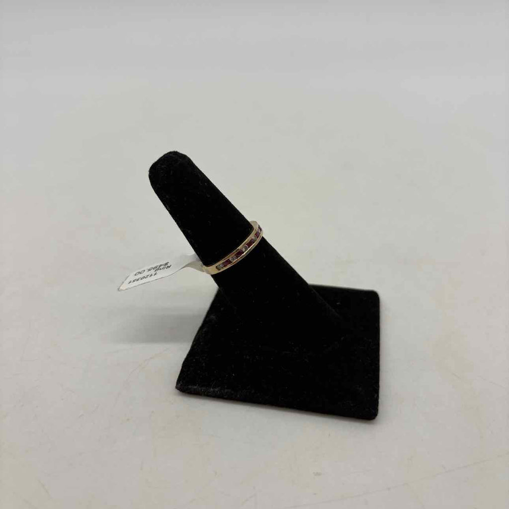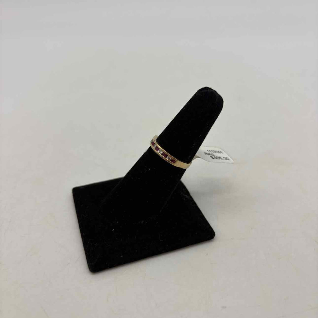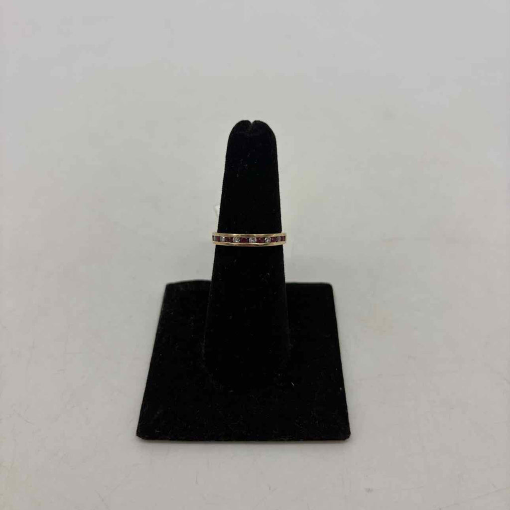 Yellow gold ruby & diamond eternity band ring
