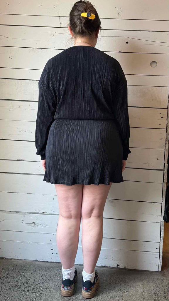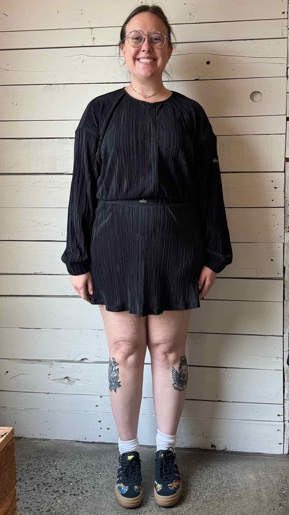 High rise elastic waist micro plisse pleated tennis skort. Fits true to size.
