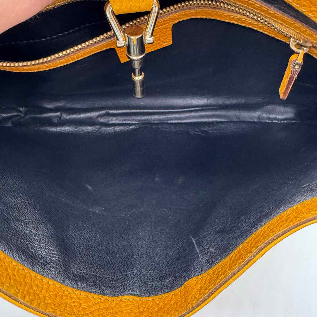 Vintage leather Jackie piston lock shoulder bag. This item comes with its duster.