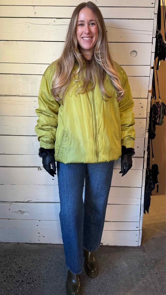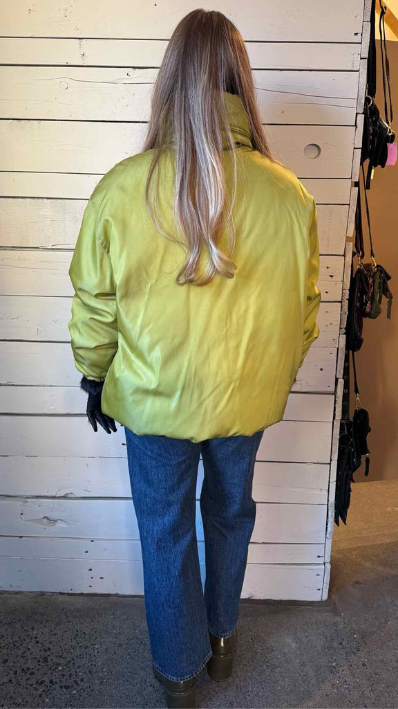 Vintage long sleeve full zip packable hood down filled nylon puffer jacket. Runs large.