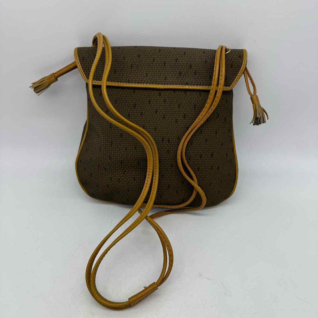 Vintage gray woven fabric snap close adjustable tassel strap crossbody bag