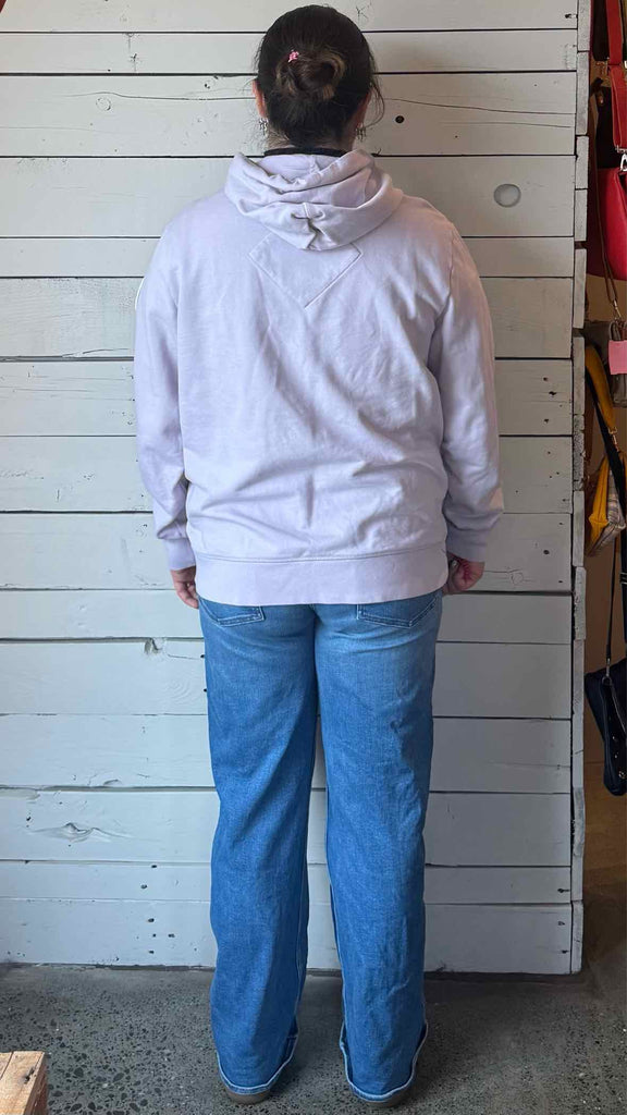 Long sleeve pull over cotton hoodie. Fits true to size.