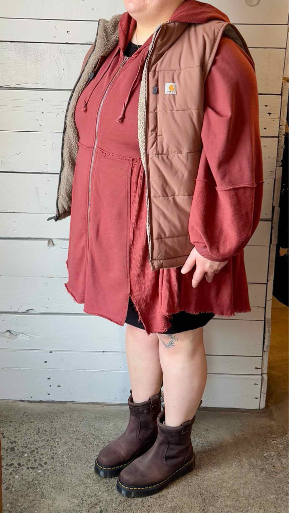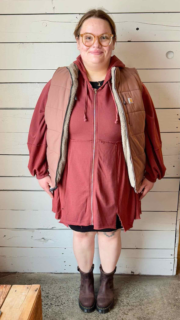 Full zip sherpa lived reversible puffer vest. Fits true to size.