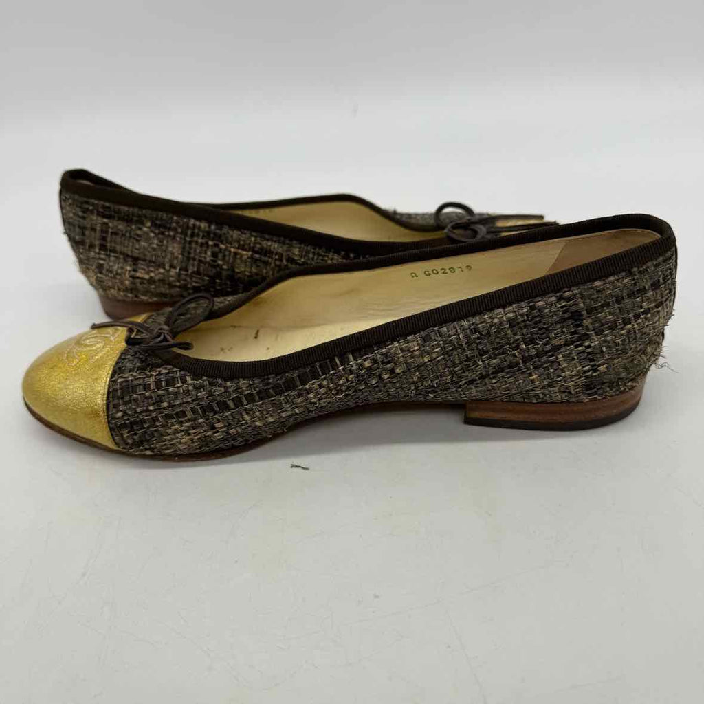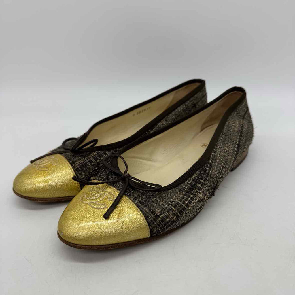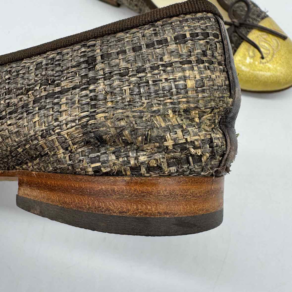 Round gold toe interlocking C raffia ballet flats - worn and small tear in raffia
