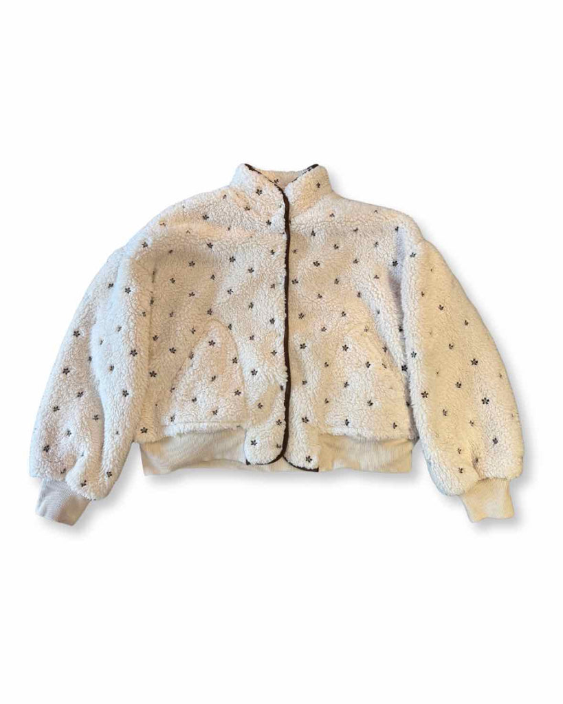 Long sleeve button front fuzzy fleece with embroidered flowers. Fits true to size.