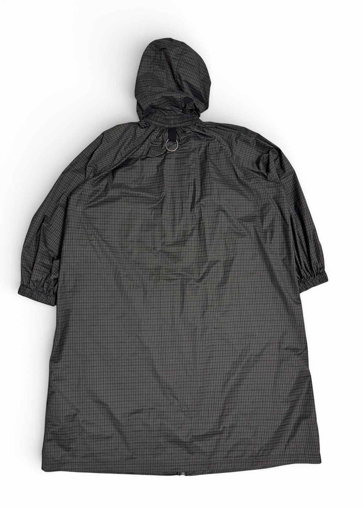 Long sleeve nylon plaid zip up long rain trench. Fits oversized.